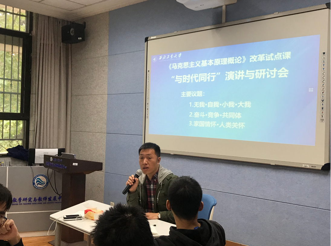 “我演讲的题目是时代新人的历史担当”,“我发言的题目是无我、自我、小我与大我之间的关系”,“我不赞同你的观点,我认为个人奋斗与竞争并不矛盾”……在2019年10月22日上午的“马克思主义基本原理概论”改革试点课上,一场别开生面的演讲比赛与研讨会正如火如荼地进行。如何调动学生在思政课上学习的主体性,让学生成为思政课的主角,让思政课真正走进学生心灵,是这次改革试点的重要环节。