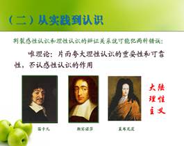 理工科学生实际,李军时老师把培养学生的科学精神作为首要目标。在讲授实践与认识一章,通过分析英国经验主义与大陆理性主义在人类认识原理上两种观点的斗争以及马克思主义哲学对人类认识原理的科学揭示,培养塑造学生的科学质疑精神。与此同时,针对新时代大学生将要担当的国家富强、民族振兴的重任,特别是小说h