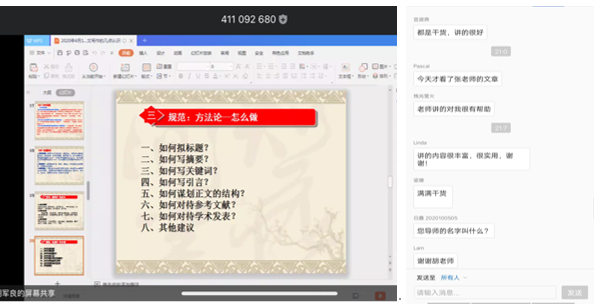 师生更好地掌握人文社科学术研究方法,提升学术论文写作水平,2020年4月17日19时至21时40分,西北大学哲学学院副院长胡军良教授应邀,依托线上平台,为小说h