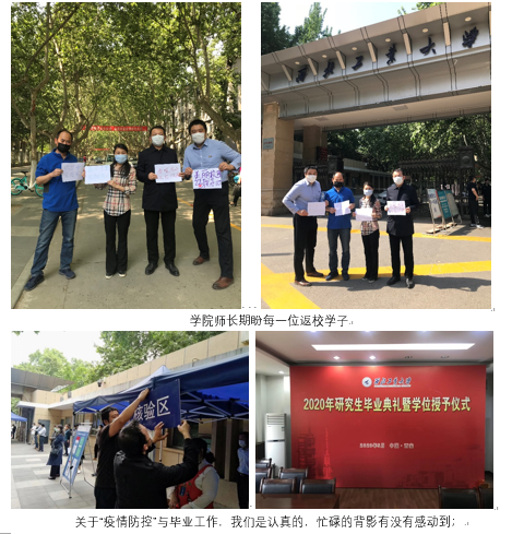 王酒莉:返校第一天,见到了许久未见的老师和同学,特别亲切,在老师们的悉心安排下,我们的一切手续都高效地进行着,之前一直担心来学校会很匆忙,然而并没有,学院的老师们把一切能想到的都给我们安排上了,毕业的仪式感丝毫不减,谢谢学校和学院站在我们的角度为我们做的所有一切,感谢为我们付出的老师们,您们辛苦啦!