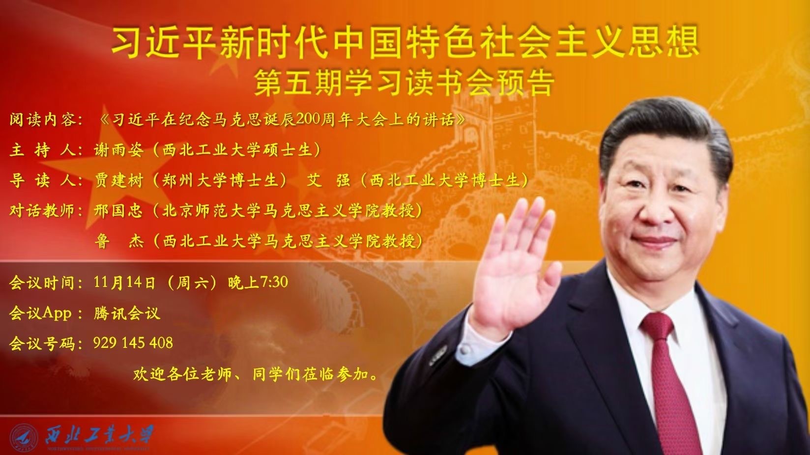 教授、法学博士、博士生导师刑国忠老师作为本次读书会的特邀嘉宾。本次读书会主题主要围绕《习近平在纪念马克思诞辰200周年大会上的讲话》展开。此次活动由小说h