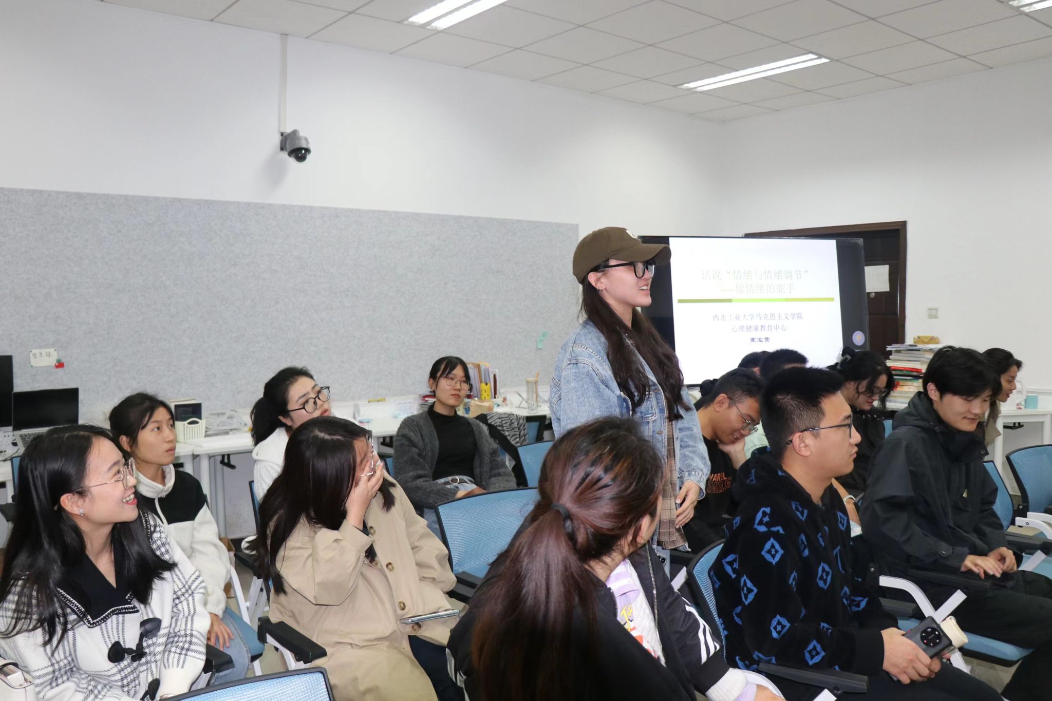 高宝营副教授在学院332智慧教室开展“翱翔关爱讲堂”,为师生作题为《话说“情绪与情绪调节”——做情绪的舵手》心理讲座。讲座由学院团委书记、硕士生辅导员王换主持。