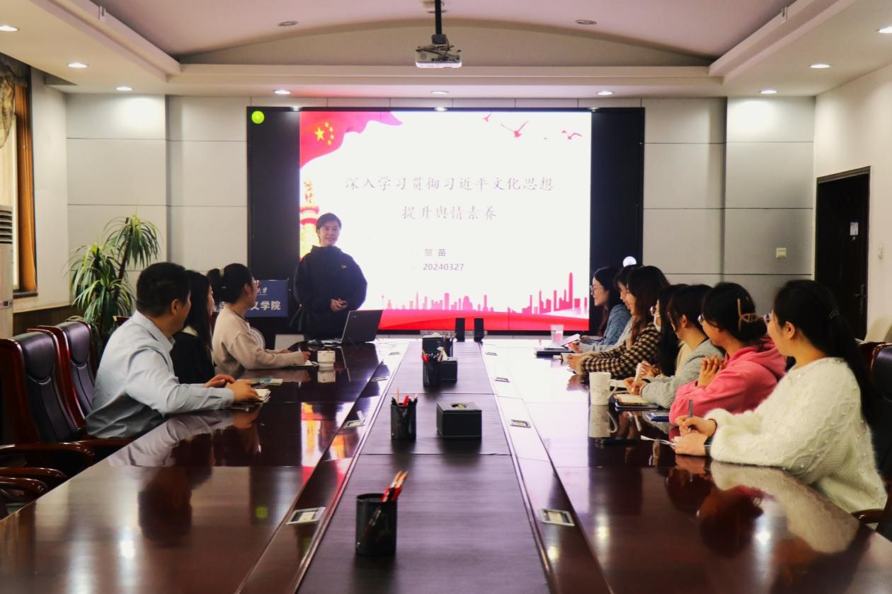 副院长贺苗以《深入学习贯彻习近平文化思想 提升舆情素养》为主题在学院楼208会议室,为学院机关党支部讲授专题党课,会议由机关党支部书记郭雅楠主持。