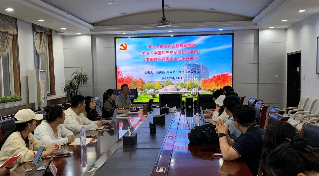 博士生第四党支部在学院208会议室开展了党纪学习教育专题党课,邀请学院党委书记蒲传新为支部全体党员讲授此次党课,会议由党支部书记王心彤主持。