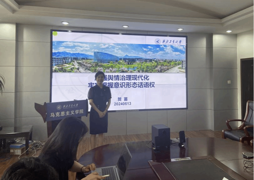 副院长贺苗在学院楼208会议室为马克思主义基本原理系硕士生党支部讲授“加强舆情治理现代化,牢牢把握意识形态话语权”专题党课。马克思主义基本原理系硕士生党支部全体成员聆听党课,并围绕“新时代大学生在舆情治理现代化中的作用”开展交流探讨。
