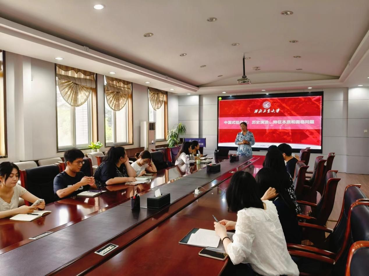 院长助理赵海霞应邀为博士生第三党支部讲授“中国式现代化:历史演进、特征本质和面临问题”专题党课。本次党课在学院楼208会议室举行,博士生第三党支部全体党员按时参加并认真学习。