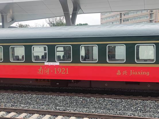 紧接着,队员们前往嘉兴,瞻仰南湖红船。南湖秀水潋滟,红船静卧永候,一艘画舫,承载着缔造中国共产党的使命,见证中国历史上开天辟地的大事件。在南湖红船上,中国共产党第一次全国代表大会的代表们用七个小时,讨论通过了中国共产党历史上第一个纲领、第一份决议,并且选举出了第一届中央局成员,这向世界昭示中国共产党的成立,从此以后,中国革命有了核心,中国人民有了依靠。这艘船并不是历史中的那条船,而是1959年经过考证以后仿制的,其历史也有62年了,中共一大代表董必武重访嘉兴南湖时,曾欣然做诗:“革命声传画舫中,诞生共党庆工农。重来正值清明节,烟雨迷濛访旧踪。”一个有9500多万党员的党在一艘船上成立,它的名字——红船永载史册,一百年来,中国共产党从红船起步,从小到大、从弱到强,创造了一个又一个彪炳史册的人间奇迹,小小红船成长为承载着中国人民希望的巍巍巨轮。