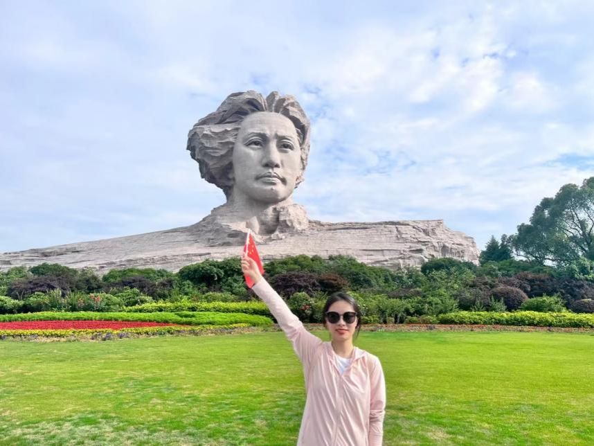 马克思主义中国化研究专业的恽萧分享到:国庆期间,我有幸前往长沙橘子洲头游览,并在青年毛泽东艺术雕塑前留下了珍贵的合影。站在湘江之畔,望着这座雄伟壮观的雕像,我不禁被深深触动。橘子洲不仅是一处自然风光旖旎之地,更承载着厚重的历史记忆与文化内涵。毛泽东主席曾在此留下“独立寒秋,湘江北去”的名句,这些诗句仿佛穿越时空,将我们带回那个充满理想与激情的时代。此次参观让我更加深刻地感受到了革命先辈们为了国家独立、民族解放所付出的巨大牺牲与不懈努力。同时,也提醒着我们要珍惜当下来之不易的和平生活,继续发扬艰苦奋斗的精神,在各自的岗位上发光发热,为建设更加美好的中国而不懈奋斗。这次橘子洲之旅不仅是对历史的一次回顾,更是对未来的一种期许。
