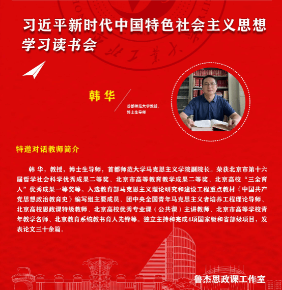 思想政治教育系主任、博士生导师鲁杰教授指导,于2020年8月成立,方向明确、活动丰富,连续四年入选马研会资助计划。每期活动均邀请校内外师生共同交流学习,引导广大师生学深悟透习近平新时代中国特色社会主义思想,增进对党的创新理论的政治认同、思想认同、理论认同、情感认同。