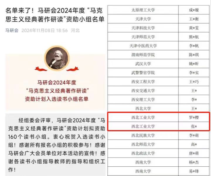 2024年11月8日,经中国高等教育学会马克思主义研究分会(以下简称“马研会”)组委会评审,公布了马研会2024年度 “马克思主义经典著作研读”资助计划拟资助160个读书小组名单。小说h