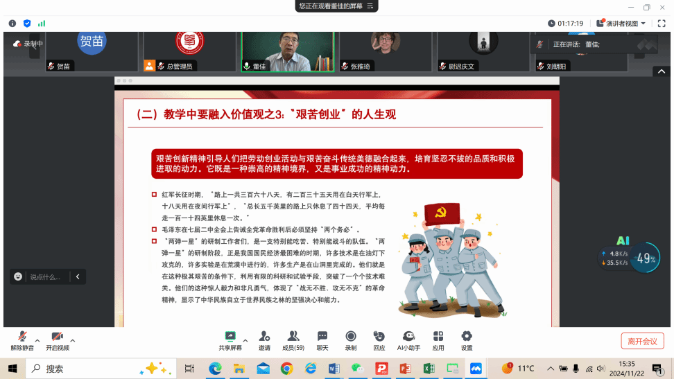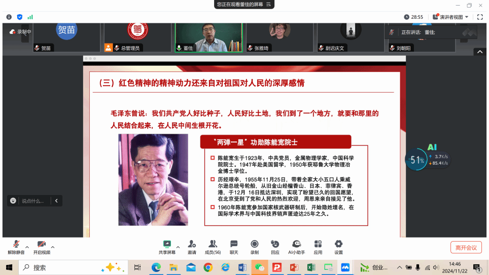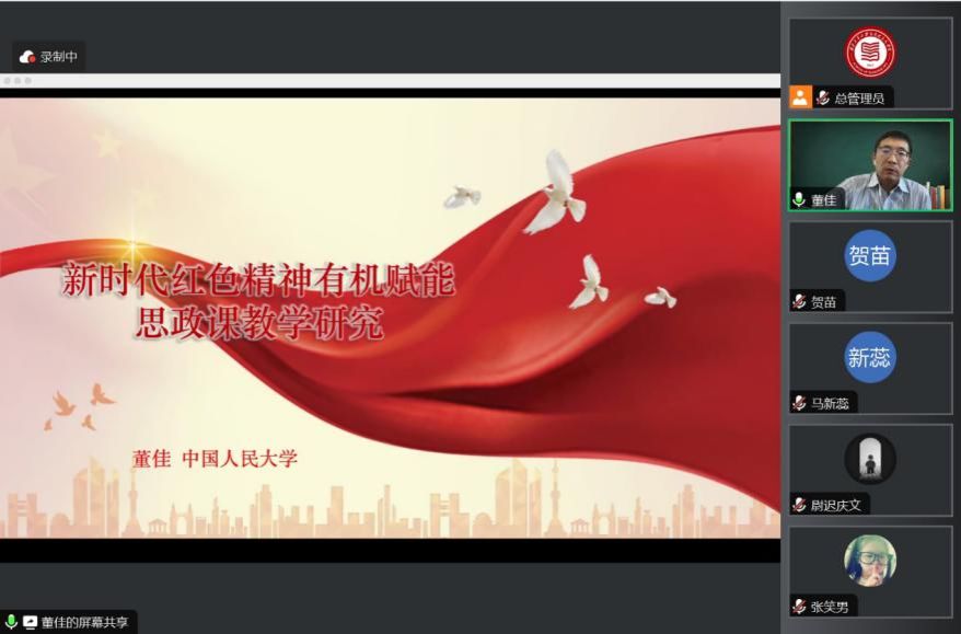 邀请到中国人民大学延安十三年与中国式现代化研究院副院长董佳教授带来了一场主题为“新时代红色精神有机赋能思政课教学研究”的精彩讲座。本次会议由小说h