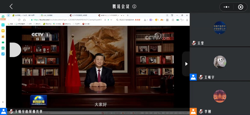 晚上七时整,学院全体师生相聚云端,共同观看聆听了国家主席习近平发表的二〇二二年新年贺词。紧接着,导师们与自己的学生进行了亲切互动,通过打电话、微信聊天、视频通话等方式,大家互送祝福,共同讨论一年来的收获、成长。同时,在“迎接2022马院一家亲”微信群中,大家互赠祝福与红包,气氛欢快活泼。
