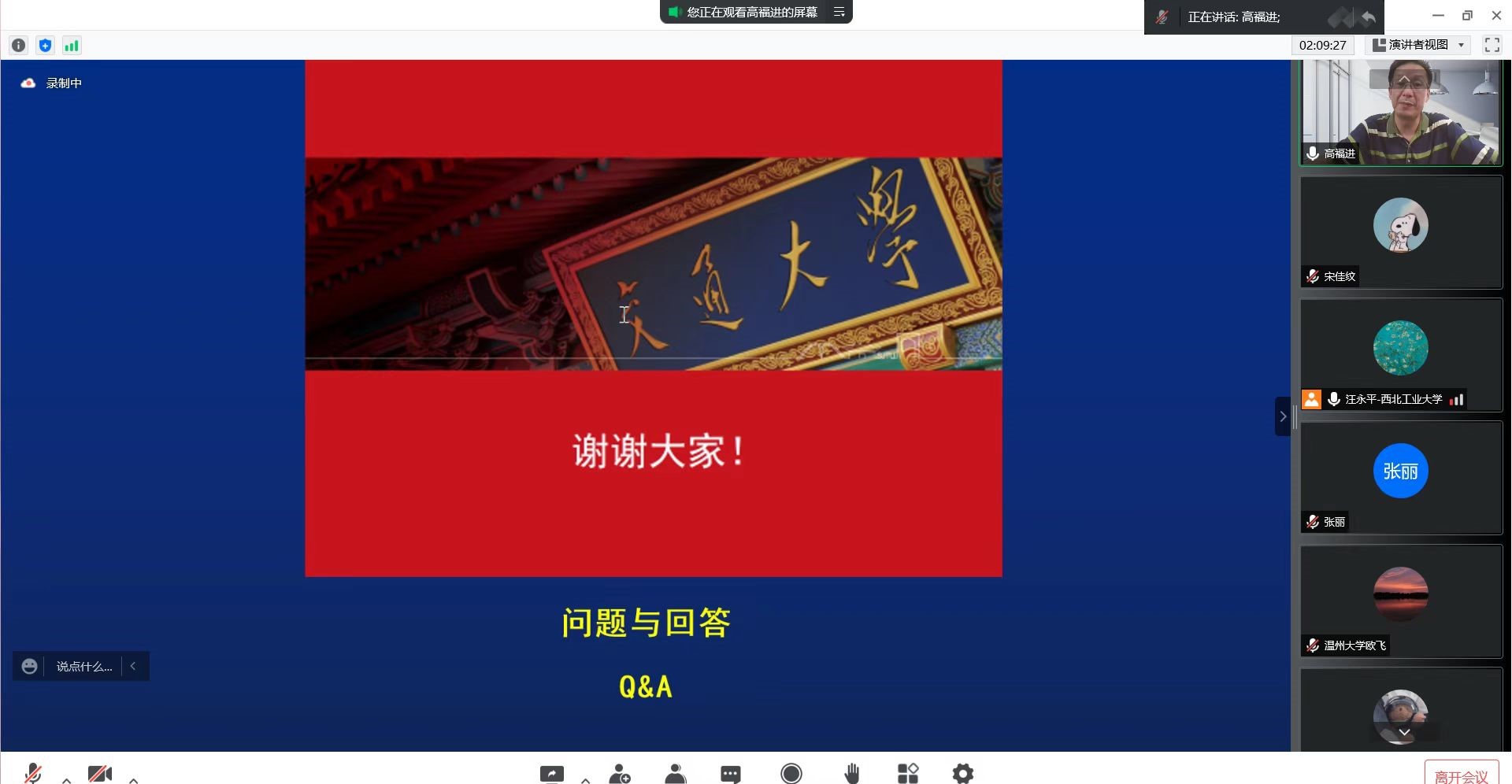最后,汪永平老师对本次高老师的报告进行了简要的总结概括,对于高教授为我们带来的精彩讲座表示感谢,并希望师生学习生活中加强“四史”的学习,增强对“四史”的了解。与会师生也纷纷向高教授为我们带来精彩的报告表示感谢。