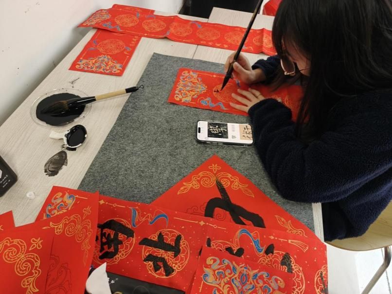 演出结束后,学院组织了迎元旦写春联活动,笔墨飘香间传递节日祝福。