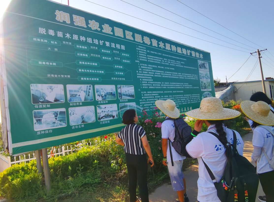 图为实践队员参观产业园区脱毒苗技术详解