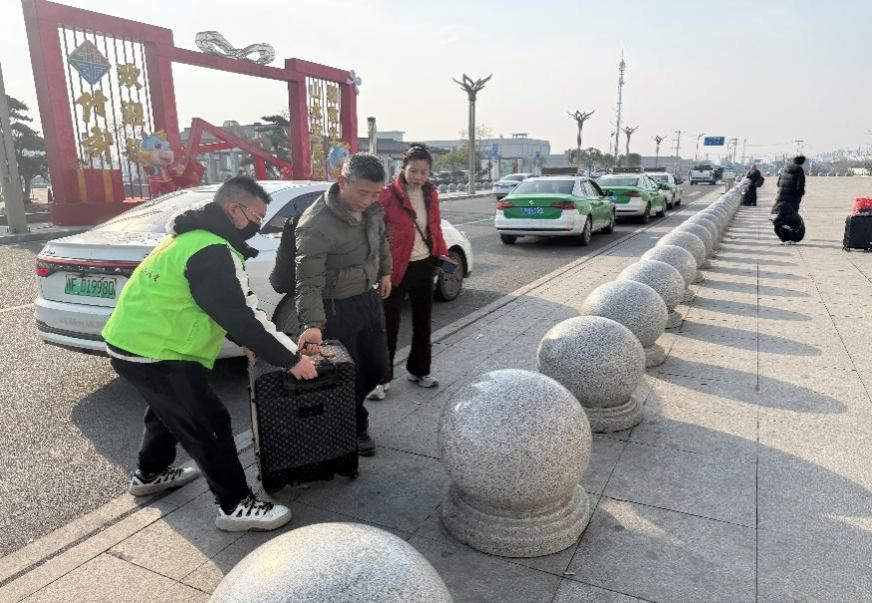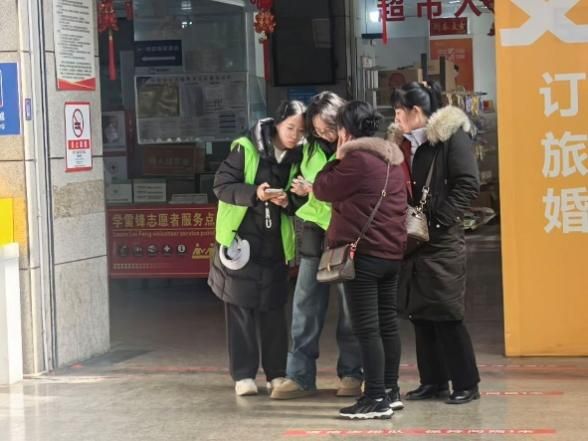 春运期间,车站人流密集、节奏紧张,返乡旅客携带行李多、出行需求复杂。面对繁忙的客流环境,志愿者们迅速投入岗位,在售票区、候车区和进出站口等重点区域开展引导服务。在售票区,志愿者耐心指导旅客使用自助购票设备与网络售票系统,协助完成信息查询和取票流程;在候车区域,志愿者重点关注老年人、行动不便旅客以及携带大件行李的家庭,主动提供路线指引、行李搬运与候车协助服务。一次次细致的解答、一趟趟贴心的引导,让旅客在繁忙的春运中感受到温暖与安心,也让车站运行更加井然有序。
