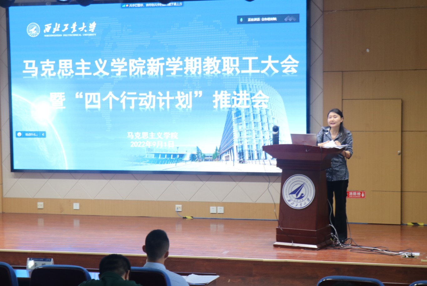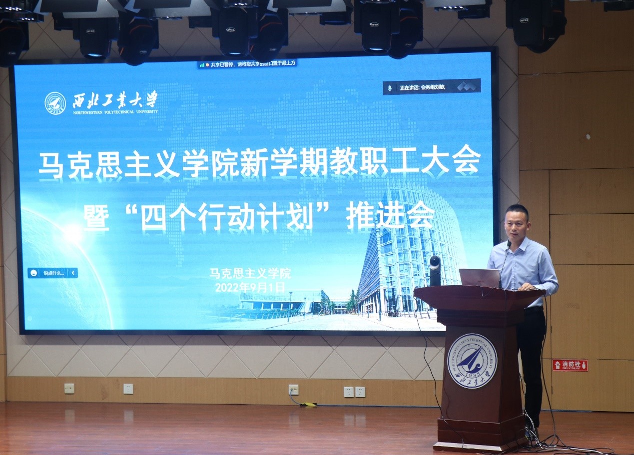 会上,蒲传新首先传达了学校新学期干部会暨人才工作会议闭幕会上的讲话和《主动服务新时代人才强国战略 扎实推进学校人事人才工作高质量发展》主题报告精神,带领大家进一步深入学习领会了新时代人才强国战略的重大意义,深入解读学校党委关于“四个行动计划”的决策部署,以学校未来发展的“四梁八柱”为蓝本,结合马院实际和工作要求,加强“基层探索”,推进“四个行动计划”落实落细。