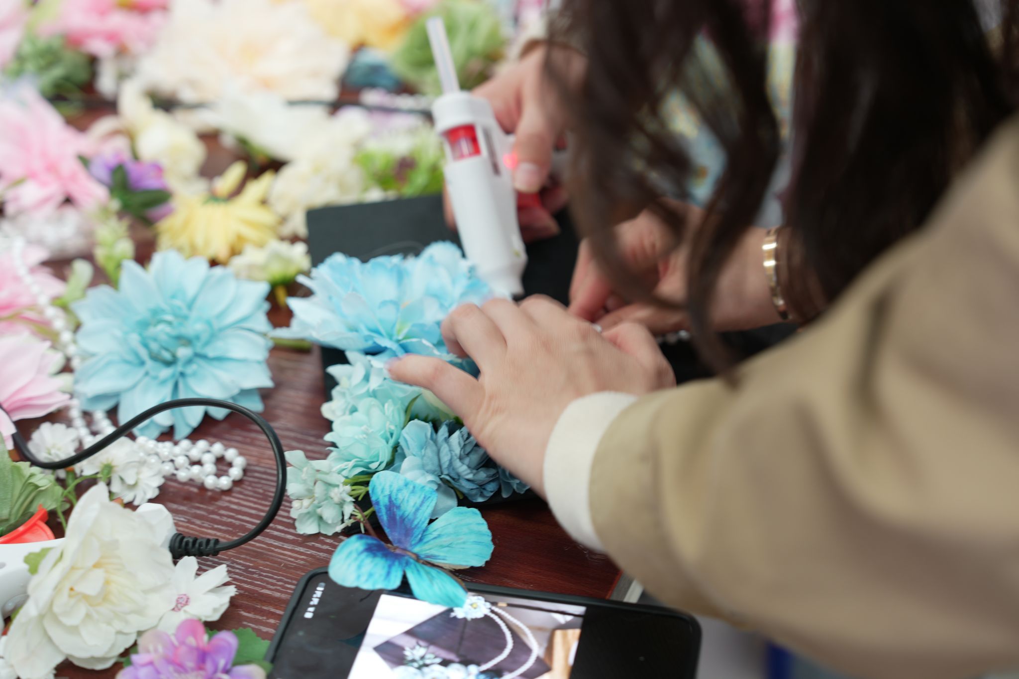 活动室里暖意融融、笑语不断,每一朵繁花都寄托着同学们对未来的美好期许。