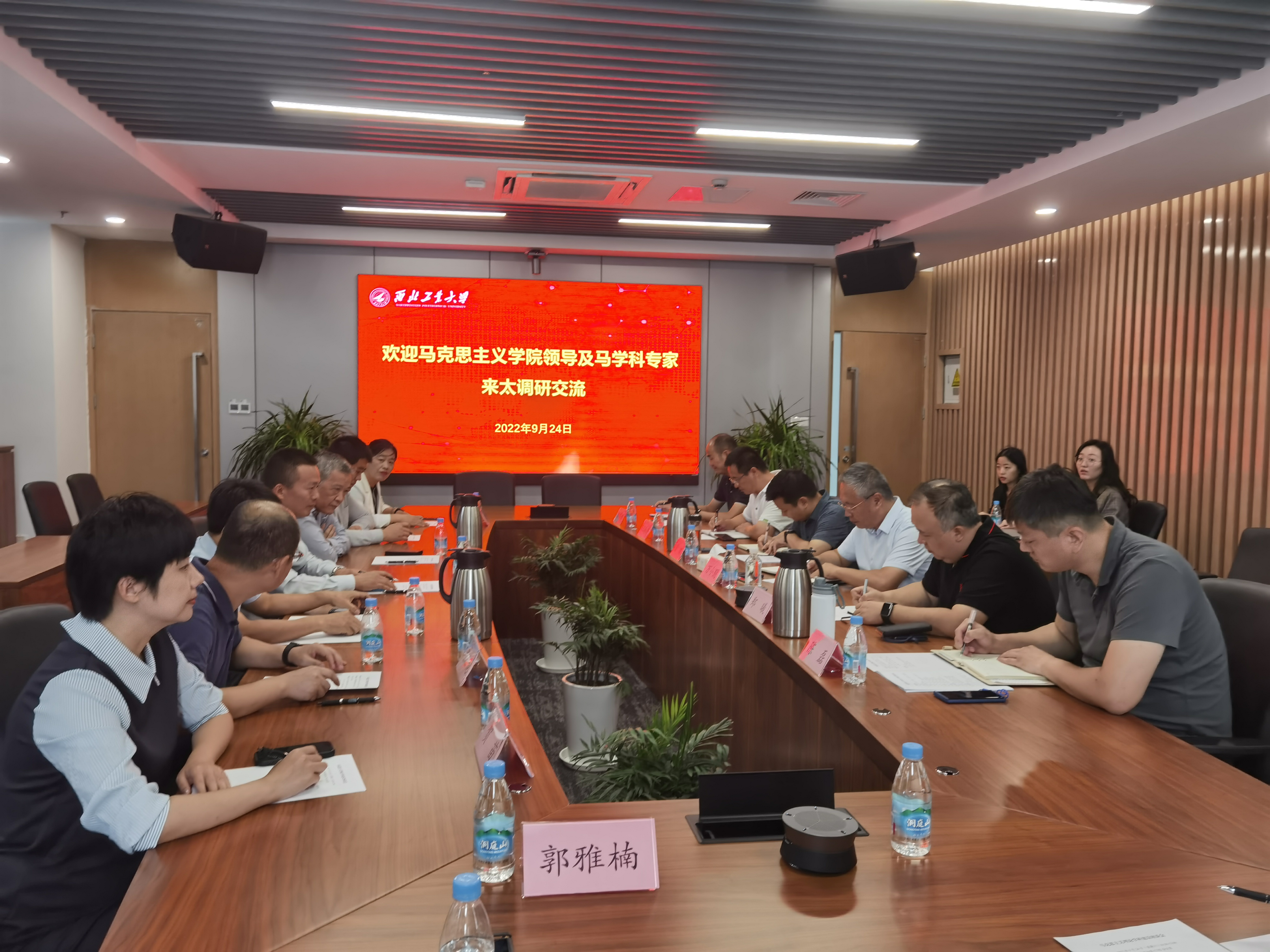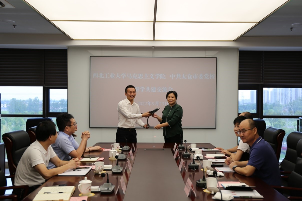 马院基本情况。他表示,高校、党校(行政学院)是我国哲学社会科学“五路大军”中的重要力量,肩负着为党育人、为国育才的重要使命,市委党校工作紧密结合城市发展,充分展示了理论研究与实践相结合的优势,希望马院与党校进一步加强沟通联系,广泛开展研学共建。张云龙介绍了学院的学科建设和研究生培养工作,在学科建设方面,学院非常重视马克思主义理论学科与当代前沿科技发展的结合,学院对于硕士生的培养和博士生的培养各有侧重,环环相扣;太仓是重要的科研基地,是中国现代科技发展的前沿;现在是一个科技的时代,学术研究要打开视野,既要“仰望星空”也要“脚踏实地”,与市委党校开展研学共建,有助于学科建设和研究生培养工作。贺苗就学院的思政课教学工作做介绍,她表示,学院承担着全校思政课教学工作,贯彻落实党中央对于高校思政课建设的决策部署,立足学校“三航”背景开展特色思政课教学工作,学院与市委党校可以通过思政大课堂、思政小课堂、思政云课堂相结合的方式建设“大课堂”、搭建“大平台”、建好“大师资”,助力“大思政课”建设。李刚就学生工作与市委党校展开讨论,他表示,市委党校有丰富的教学资源和优质的实践平台,建议围绕“引、育、用、留”四个方面进行深入合作,有效整合教育资源。赵海霞、郭雅楠就学院的思政课教学及学院办公室管理服务工作作了补充。