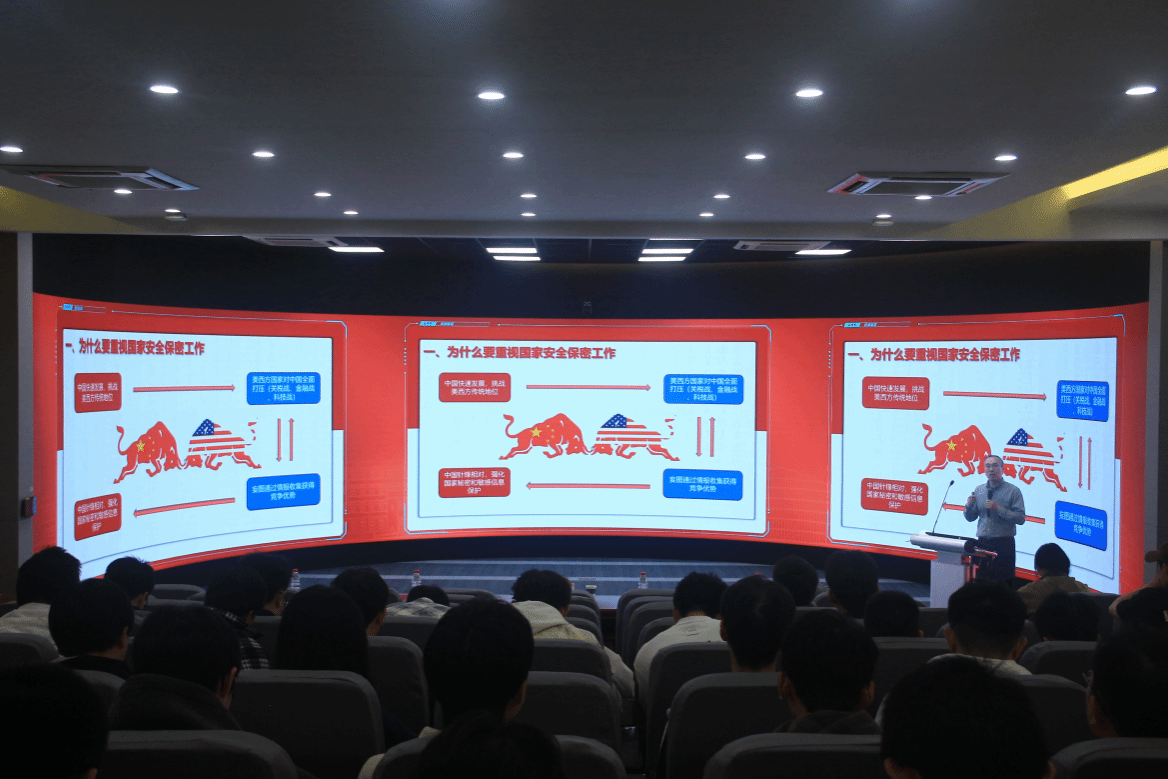王革明围绕为什么要重视国家安全保密工作、高等院校国家安全保密工作风险点、学校国家安全保密工作组织与管理、提升保密意识、贡献学子力量等方面,结合典型案例和多年工作经验,强调要深刻认识保密工作的重要性,清醒把握当前复杂形势与风险挑战,在增强政治意识、坚守保密法律法规底线,深化责任意识、按学校保密制度和要求履行岗位职责,加强保密意识和能力建设、防范技术窃密等方面精准发力,切实筑牢学校安全保密防线。