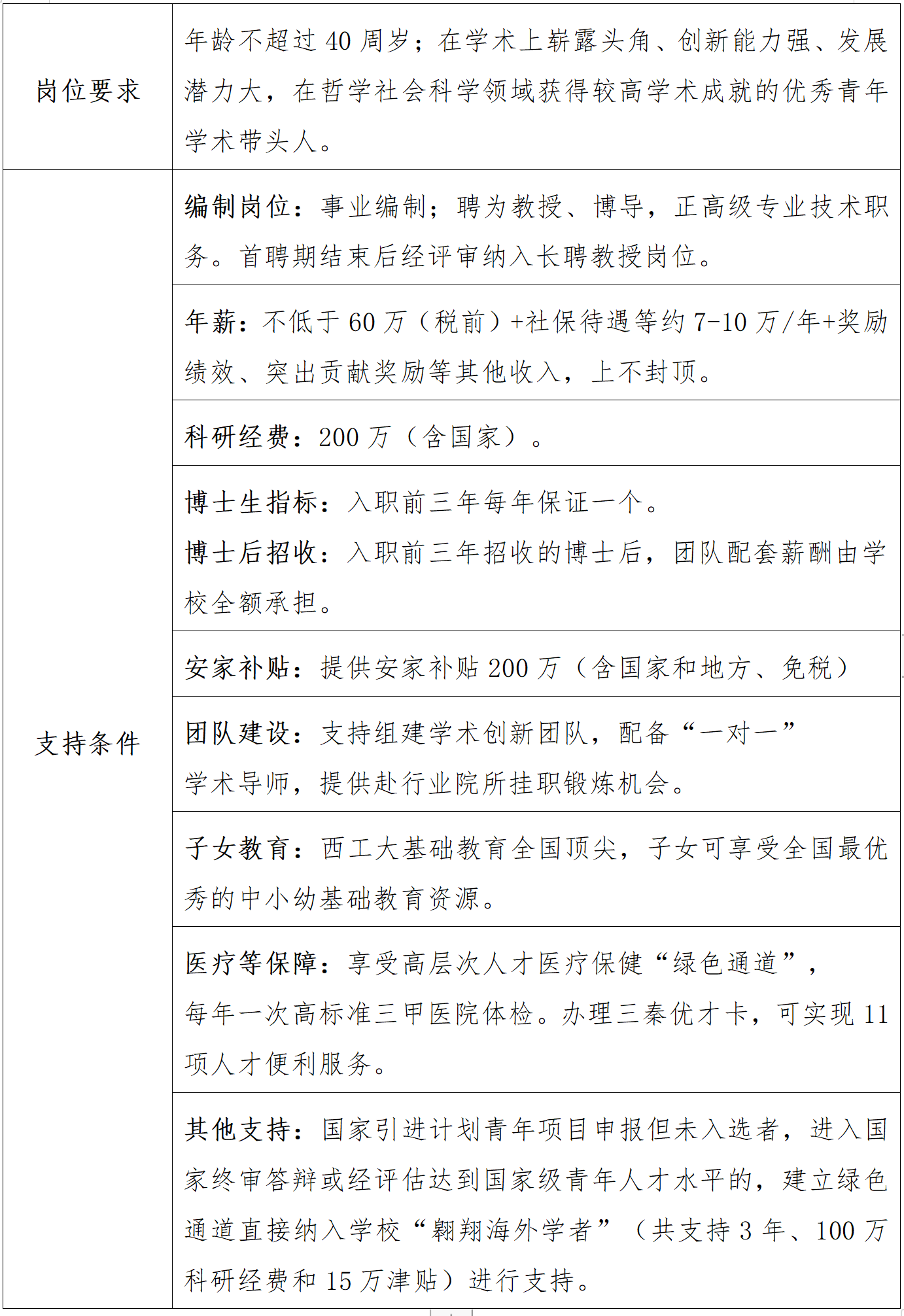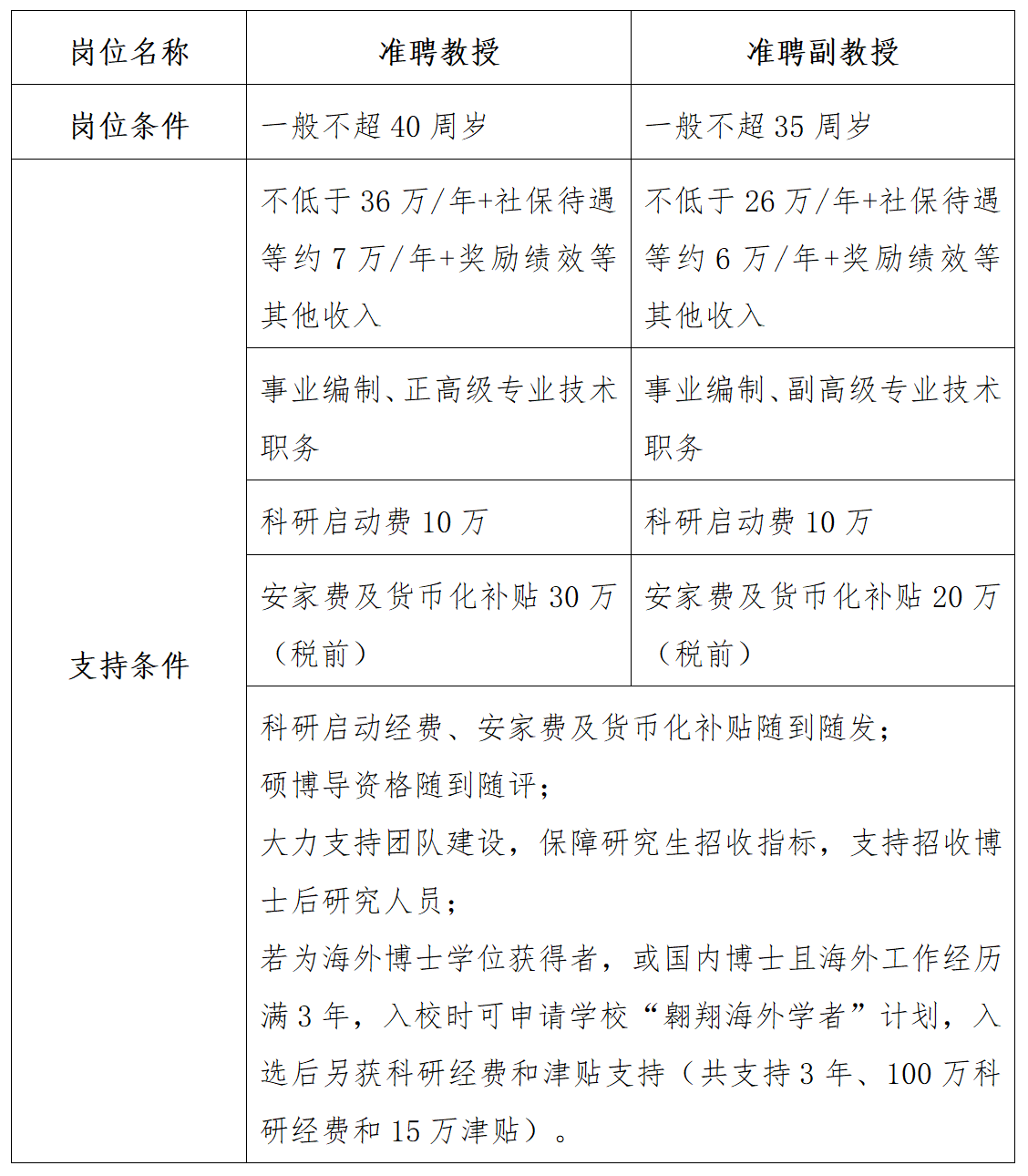 学校坚持师德师风第一标准,践行“人才强校”战略,建设适应世界一流大学发展的高水平师资队伍。设立人才特区,搭建人才集聚平台,支撑高端人才发展;实施“翱翔人才计划”,构建特色化阶梯式人才培育体系,助力青年人才成长;深化教育评价改革,把握人才成长规律,突出品德、能力和业绩导向,助力青年教师成长;院校两级在科研平台、研究生指标等方面提供协同支持;人才子女可享受全国顶尖的中小幼基础教育资源(特别是学校附属高中,实力雄厚,年均为清华北大输送优质生源约100人左右),子女入托入学完全无忧,有力保障人才潜心教学和科研。