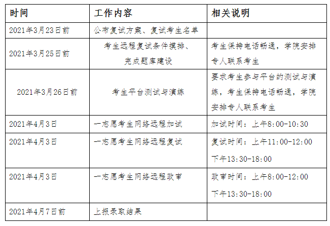 2021年硕士研究生复试工作安排如下: