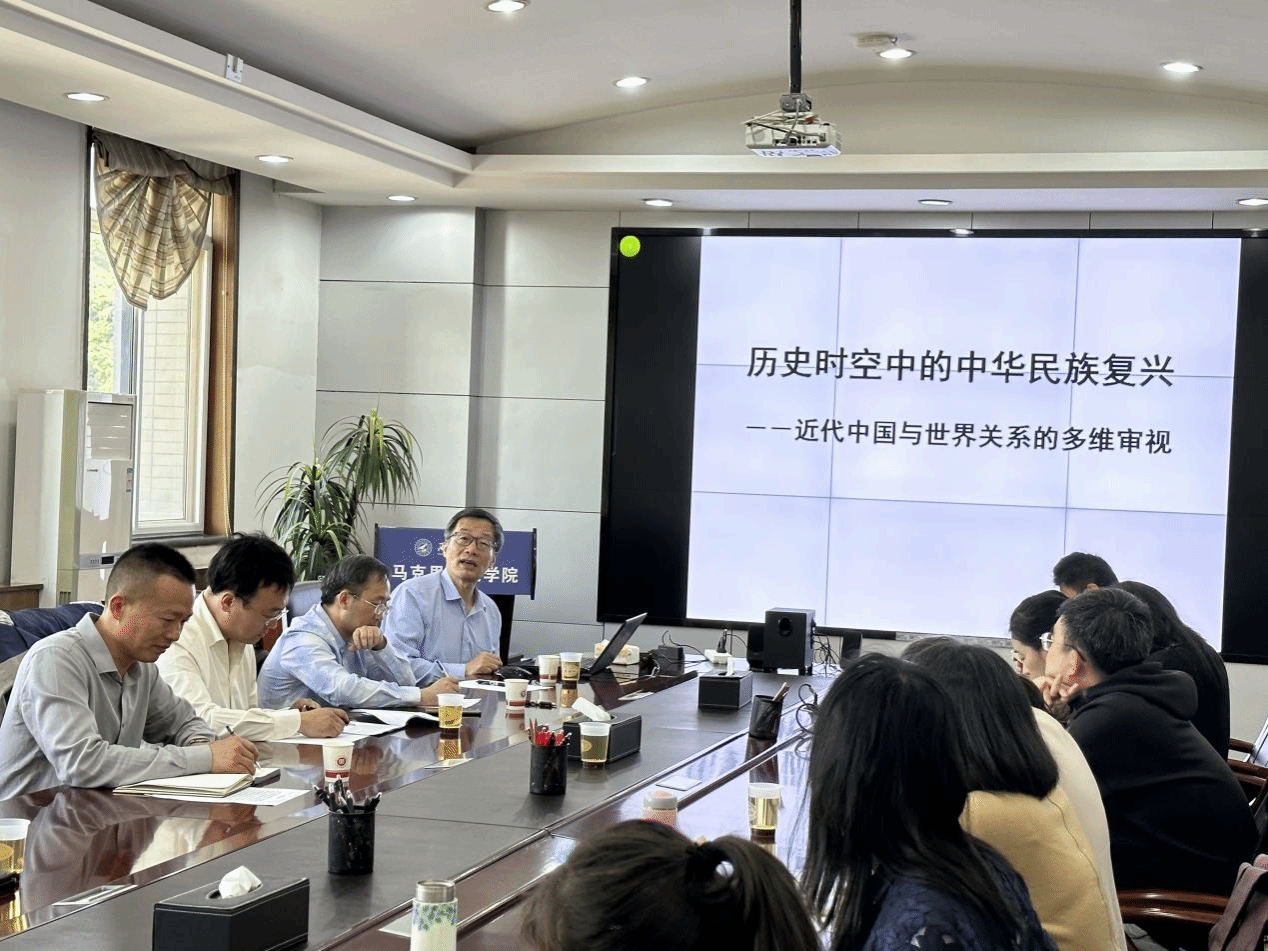 During the talk, Liu Xiangyang, Fang Xiaojie, Wang Xinrui, and Fan Mingfang of the School of Marxism, had an in-depth exchange with researcher Wang Chaoguang from the themes of grand narrative and modern Chinese history, the value stance of Chinese and foreign history writing, and the major theoretical issues of modern Chinese economic history research respectively. Pu Chuanxin, Secretary of the Party Committee of the School of Marxism, concluded the lecture from both academic and practical perspectives, and from the perspective of implementing the fundamental task of establishing moral education in colleges and universities, and advancing the great rejuvenation of the Chinese nation in a comprehensive manner with Chinese-style modernisation.