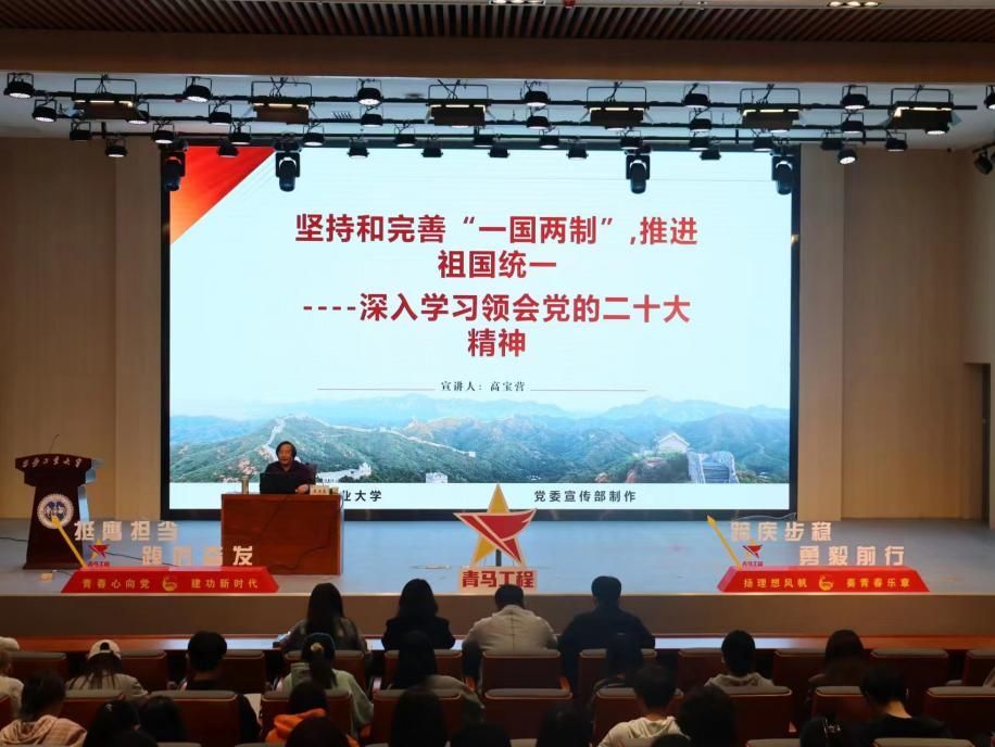 党的二十大召开以来,高宝营老师在全校形势与政策课上率先专题讲授党的二十大精神,同时在思想道德与法治等课上融入讲授党的二十大精神。此外,他作为学校党的二十大精神宣讲团主要成员为洛阳市中航光电党校、西工大后勤产业集团和西安工业大学团委等多家单位进行了宣讲,教学效果好,并由此形成了自己的特色示范课堂。
