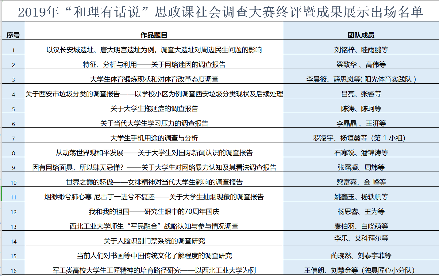 陕西省重点舆情信息研究中心联合举办的2019年“和理有话说”思政课社会调查大赛终评暨成果展示通过在线视频的形式如期举行。此次大赛邀请到陕西日报理论评论部主任魏焱、党委学生工作处副处长马俊、小说h