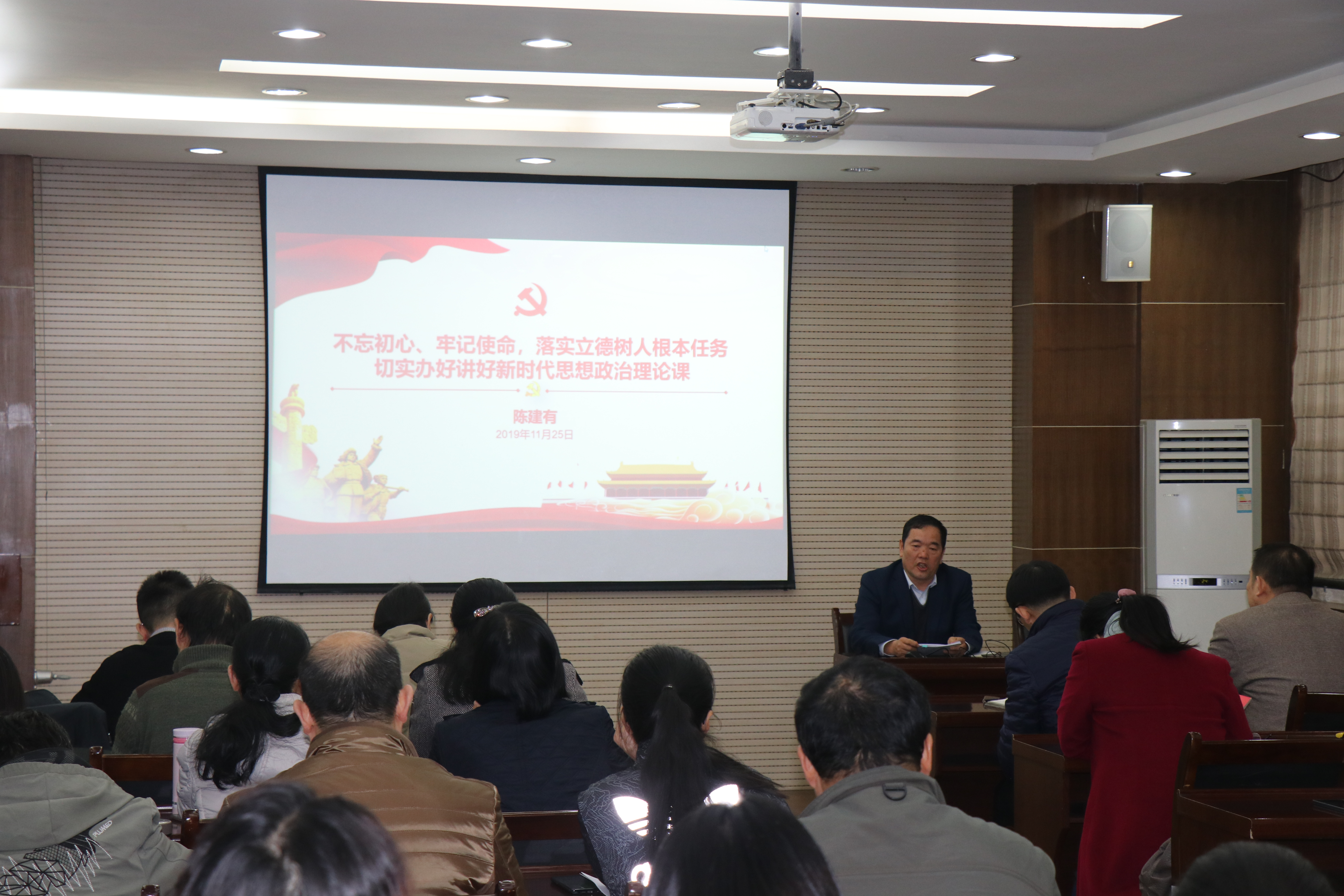 按照学校“不忘初心、牢记使命”主题教育部署安排,11月25日下午校党委副书记陈建有在小说h 305报告厅围绕“不忘初心、牢记使命,落实立德树人根本任务切实办好讲好新时代思想政治理论课”主题,面向小说h 全体教师作形势教育报告、讲授专题党课。