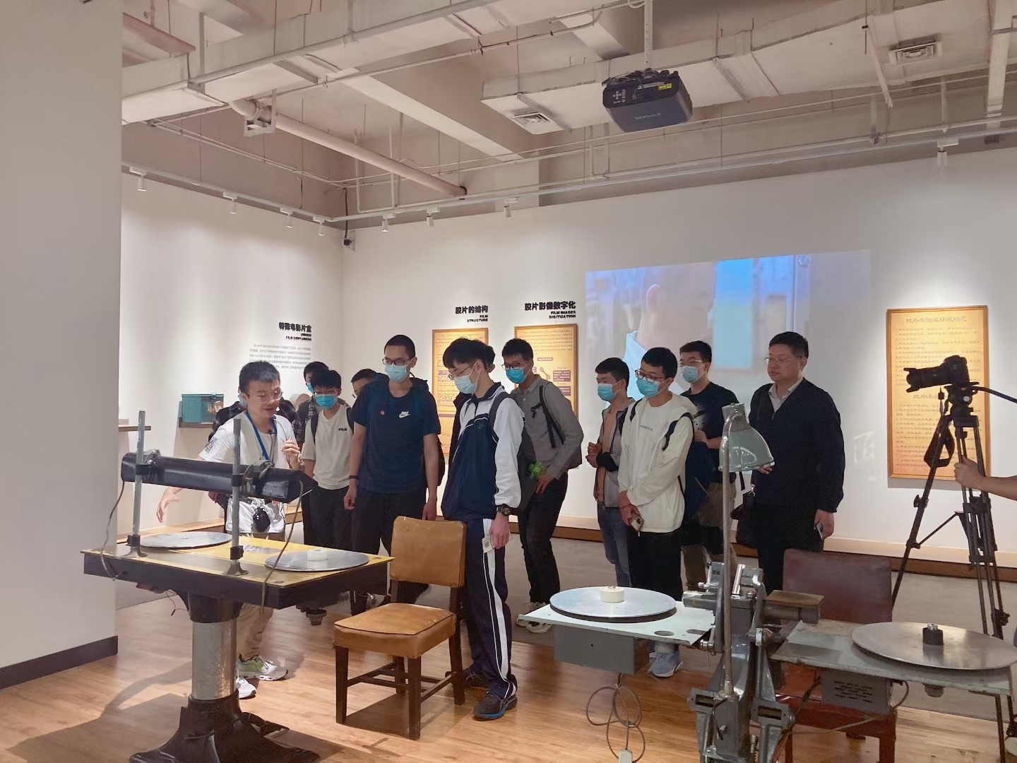 西影电影博物馆是西北首个以电影为主题的沉浸式互动体验中心。鲁老师带领学生们先后参观了西影星光大道、电影广场、电影博物馆、电影海报展等地,详细了解了西影从无到有,从困境到蜕变的发展历程。通过一盘盘经典老电影胶片,一张张时代感鲜明的电影海报和工作人员的详细讲解,让大家充分感受到“面对困难,总有办法”的西影文化。同时,“大话西游”电影实景复原展、电影配音间、摄影机博物馆等沉浸式体验区,也让大家深刻体会到电影的历史厚度温度和几代中国电影人的匠心成就。