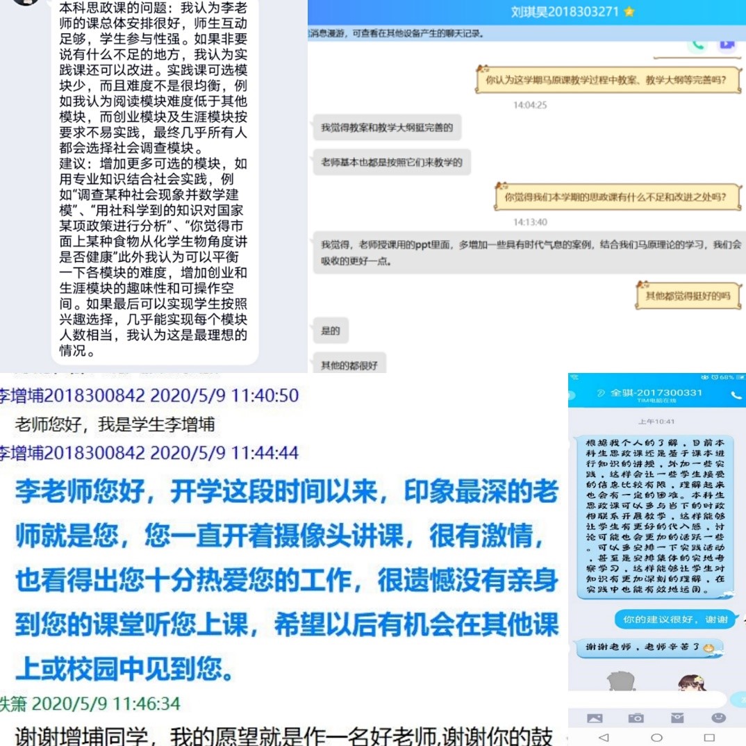 根据学校教务处要求,在全院开展本科质量保障全员自查工作。学院所有任课老师积极配合,逐项自查本学期各自教学日历、教案、教学大纲等是否规范,并且针对本科思政课存在的教学问题和整改措施和同学们展开了积极交流,学生们反响热烈,积极参与讨论,为本科思政课教学改革建言献策。