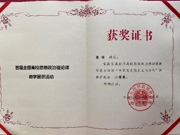 日前,教育部“首届全国高校思想政治理论课教学展示活动”证书下发,小说h
