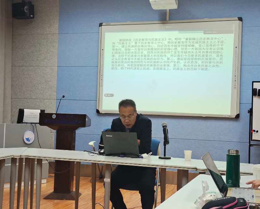 师生带来了一场题为《救亡图存:战时历史教育的民族认同教育》精彩的报告。本次“思政名师示范课”讲堂采用线上线下同步形式:左玉河教授在友谊校区老图书馆219多媒体报告厅与小说h