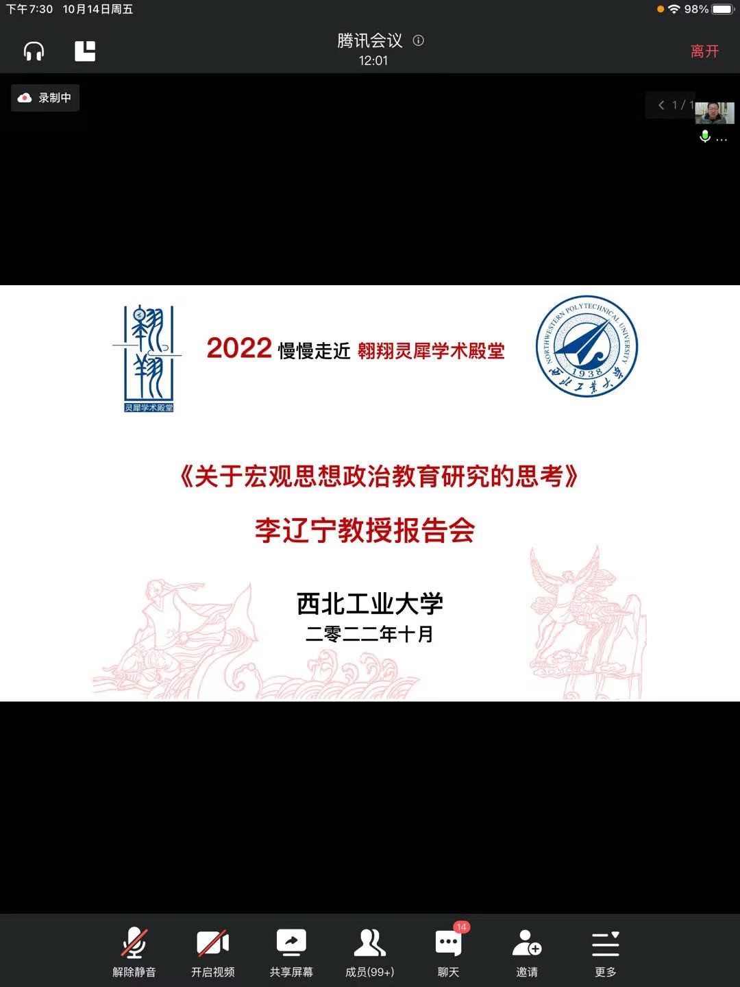 2022年10月14日晚19:30,国家社科基金重大项目首席专家、国家社科基金年度项目通讯评审专家、四川大学小说h 李辽宁教授应邀做客小说h “翱翔灵犀学术殿堂”,通过腾讯会议平台直播的形式为我们带来了一场主题为《关于宏观思想政治教育的思考》的精彩报告。小说h 思想政治教育系主任鲁杰教授主持报告会,来自小说h 、四川大学、东北大学等200余名师生共同参加了此次活动。