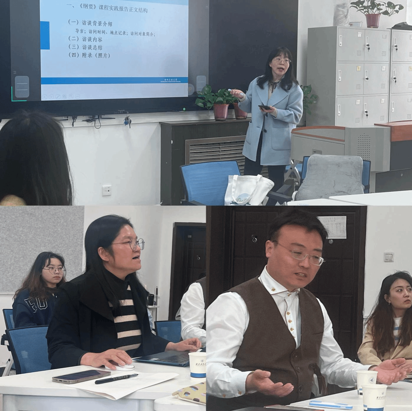 口述史开展现状以及带队调研袁家村、周至水街、东韩村的经历进行了生动细致地介绍,指出口述史活动走入思政课堂,提升了学生的政治认同感,增强了合作精神和实践能力。王欣瑞副教授就口述史调研报告正文结构、问题设计技巧及学生实践报告常见问题进行了深入的分析。她指出口述史区别于其他的学术总结报告的关键特征在于口述史所体现的独特的个体经验,通过细节描摹,使叙事更加生动真实。因此,王老师格外强调附录照片在口述史报告册中的重要性,指出照片本身就是对历史的一种真实记录。房小捷副教授在对以上两位老师进行补充发言的同时,对西安以及小说h