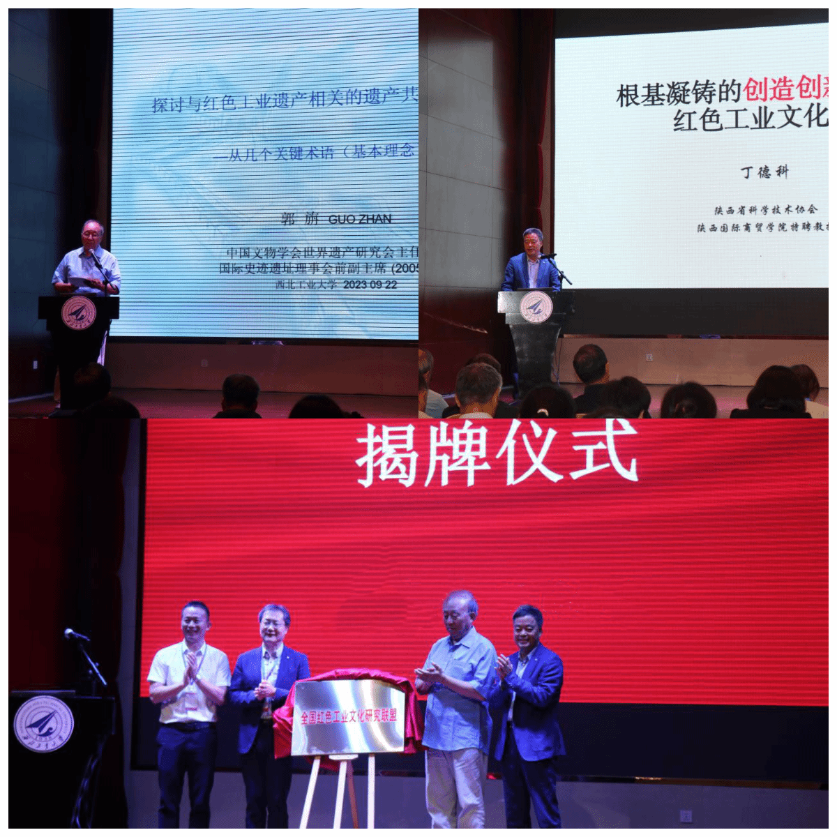 党委副书记、校社科联主席陈建有研究员及工业和信息化部工业文化发展中心副主任孙星代表主办方对各位专家学者的莅临表示热烈的欢迎。中国文物学会世界遗产研究会主任委员郭旃、陕西省科协常委丁德科分别作专家报告。最后,孙星、郭旃、丁德科等共同为“全国红色工业文化研究联盟”揭牌。开幕式由小说h
