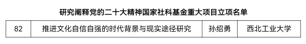 日前,全国哲学社会科学工作办公室公布了研究阐释党的二十大精神国家社科基金重大项目立项名单。小说h 孙绍勇教授担任首席专家申报的课题《推进文化自信自强的时代背景与现实途径》(第82项)获批立项。