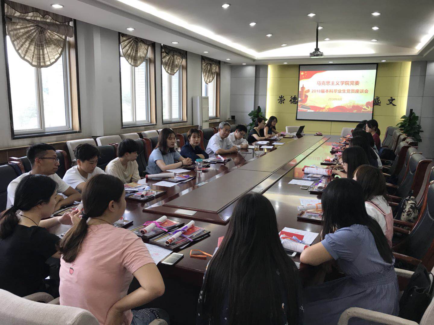 党委在学院208会议室召开2018届本科毕业生党员座谈会,学院党委书记鲁卫平,学生党建主管、辅导员曹良玉以及2018届本科毕业生党员参加了座谈会,会议由党委副书记袁源主持。