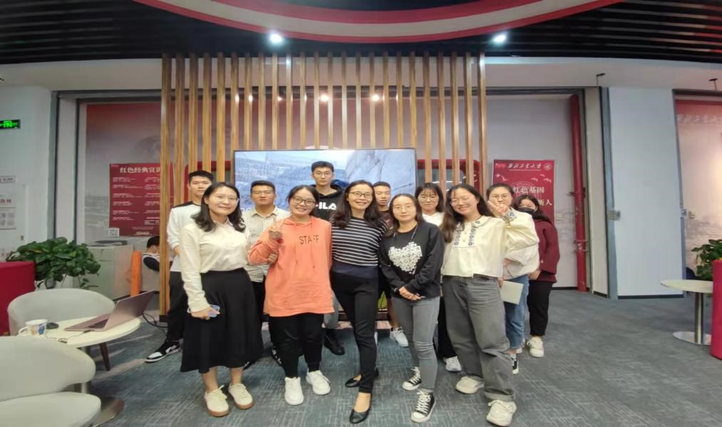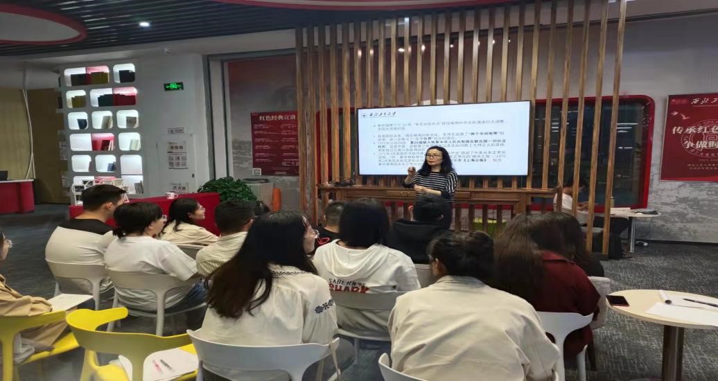 蒲瑶教在学校图书馆一楼红色书屋为工大学子送讲。