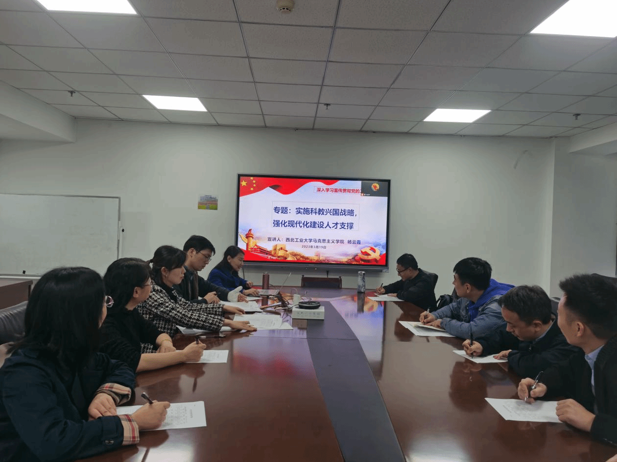 会议伊始,杨云霞院长为支部成员讲授了《实施科教兴国战略,强化现代化建设人才支撑》的专题党课。她从党的二十大报告出发,引出实施科教兴国战略的重要意义,以翔实的数据与案例展现了新时代十年科技教育领域的伟大变革,结合中国式现代化阐释了教育、科技、人才领域的目标任务、教育现代化的基本特征和要求,以科技领域面临的创新挑战为切口,引出我国科技自立自强的必要性及具体举措,最终复归到教育促进科技创新的理论探讨。整场报告主题突出,逻辑严密,层层递进,既有理论高度的概括阐释,也有现实案例的生动剖析,既有宏观视角的数据呈现,也有微观视角的西工大元素融入,进一步增进了关于党的二十大精神的领会领悟。