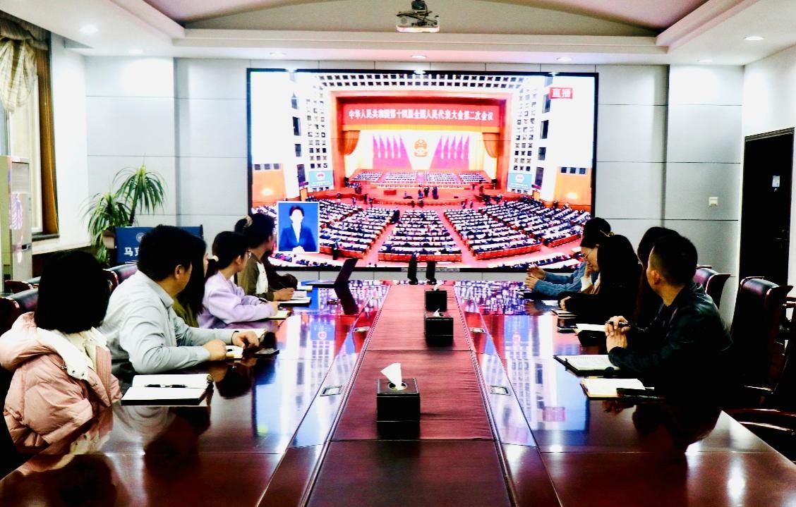 机关党支部组织全体机关同志在学院楼208会议室,集中观看十四届全国人大二次会议开幕会直播,国务院总理李强作2024年政府工作报告。