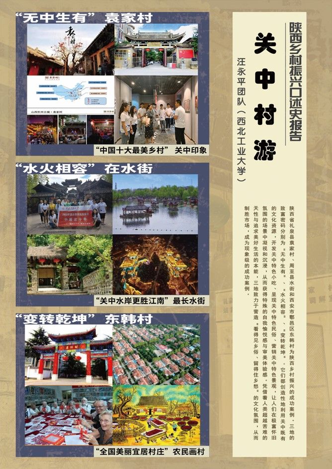 2.把文章写在中国的大地上。田野调查完成后,实践团队认真总结实践体验与感受,完成了三份调研分报告与1份总报告。调研报告的主要内容为:(1)总结三地致富密码,分别为“无中生有”“水火相容”“变转乾坤”。领导团队都创造性地利用关中既有的文化资源,开发关中特色小吃、呈现关中特色民俗、营销关中特色景观,让人们在极富怀旧氛围的场景中凝视与沉浸,从而获得特殊的自我愉悦感与审美体验感。凭借着人类超越苦难的天性与追求美好生活的本能,致力于营造“看得见乡俗、留得住乡愁”的文化氛围,从而制胜市场,成为现象级的成功案例。总结产业创始人团队是有着敏锐的市场嗅觉、前瞻的眼光、珍视“俗文化”的本能及创新的强烈冲动与能力。(2)总结党委政府及其带头人在乡村振兴中的角色为:市场化的眼光、不遗余力的政策支持、敢于试错的勇气。(3)《报告》最后总结乡村振兴取得巨大成就的原因是:在中国过去十年所开展的精准扶贫与乡村振兴战略中,中国共产党以其固有的制度优势,举全国之力,开创了人类历史上这场最为引人注目的脱贫攻坚行动与乡村振兴运动。贯穿始终的是,国家与社会共生,政府与民间共舞,政界学界企业界及社会各个阶层共情,共同演绎了这场声势浩大的“舞台剧”。