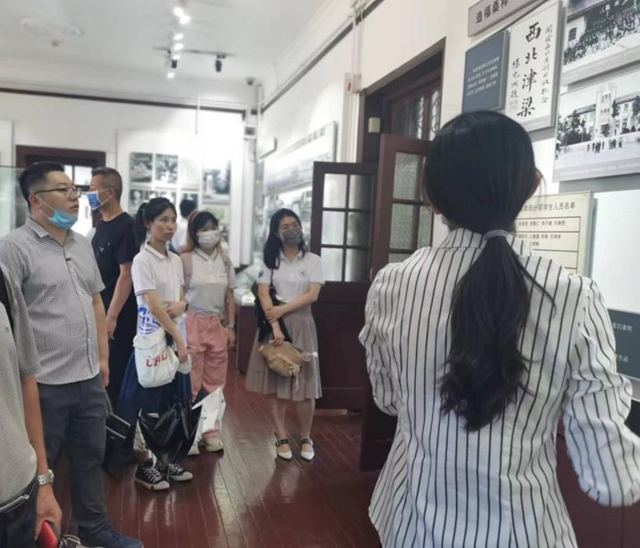 在八路军西安办事处纪念馆,队员们逐一参观了陈列室及专题展,从一件件珍贵的文件、证章、电台、烈士手稿等革命文物中;从一幅幅报纸、书信图片等感人的历史资料中,切实地感悟老一辈无产阶级革命家奋斗的艰辛历程和他们所表现的伟大抗战精神。西安办事处纪念馆位于西安市北新街七贤庄,“西安事变”和平解决后,中国共产党在此设立了红军联络处,1937年9月改为八路军驻西安办事处。主要工作是:开展统一战线工作,输送进步青年去延安,为陕甘宁边区和前方转送战争物资。周恩来、朱德、刘少奇、彭德怀、叶剑英、邓小平等多次来此,并指导工作。
