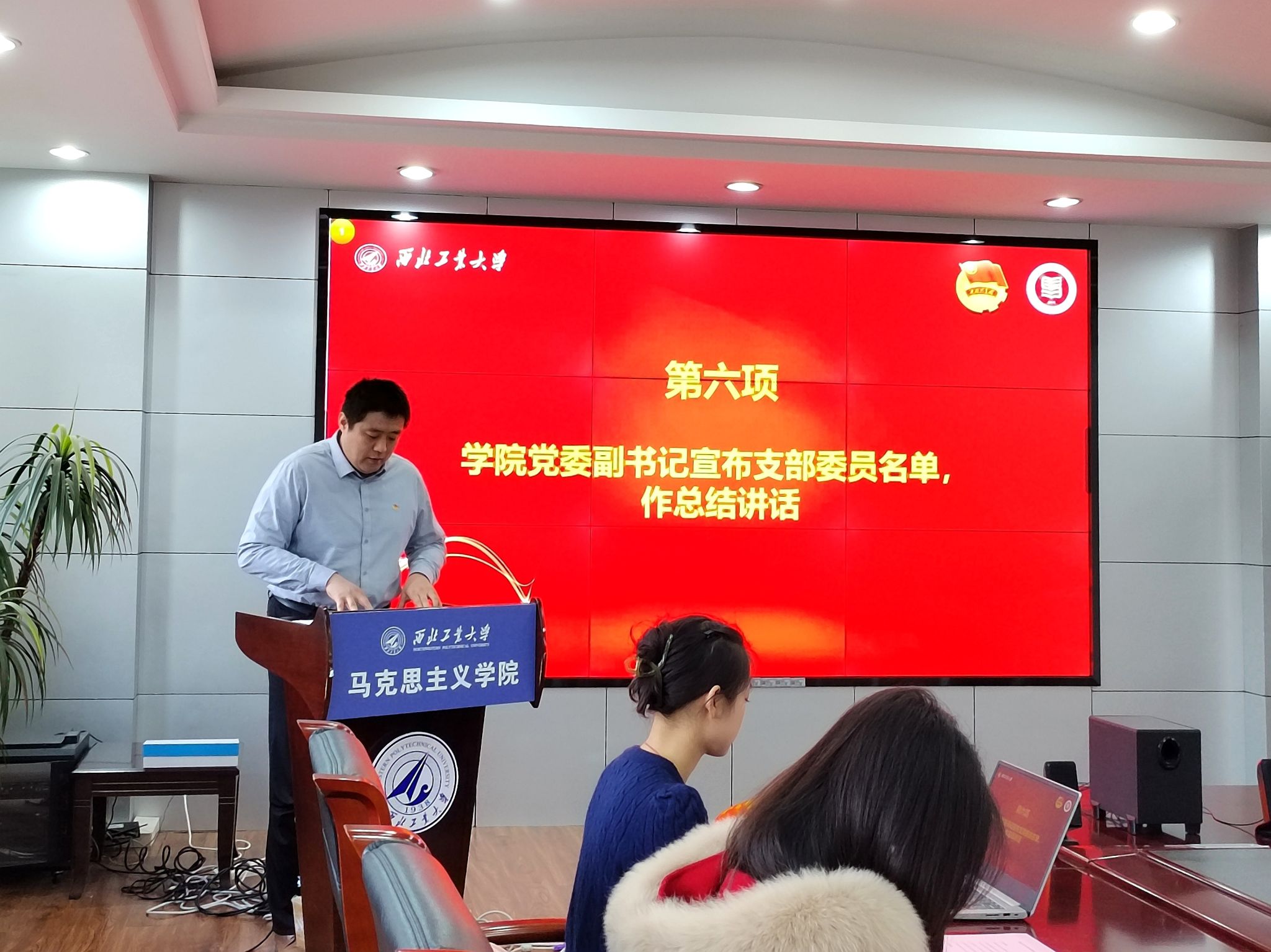 会议最后,李刚宣读支部委员名单并总结发言。他对新当选的支部委员表示祝贺并对学院研究生会团支部提出了三点建议:一是提高政治站位,要认识到共青团工作的重要性,充分发挥青年先锋队和党的后备军作用;二是结合学院特色开展工作,紧紧依靠学院、学科及学生的特点,充分发挥马克思主义理论学科思想引领功能;三是希望团支部成员踔厉奋发、勇毅前行,在工作中不断锻炼成长,提升综合素质能力。会议最后一项,奏唱团歌,至此大会顺利完成各项议程。