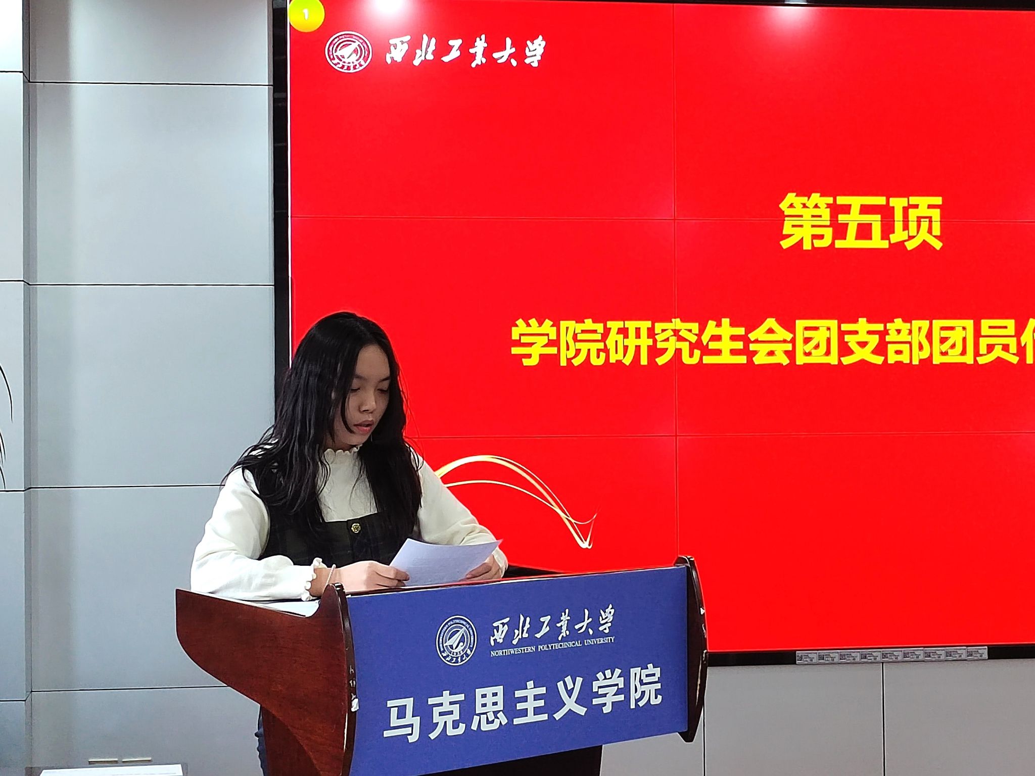 研究生会团支部委员会。团员代表雷轲结合自身工作经历分享了自己在服务同学过程中的收获,承诺将不断严格要求自己,加强学习,提升自我,承担起青年责任。