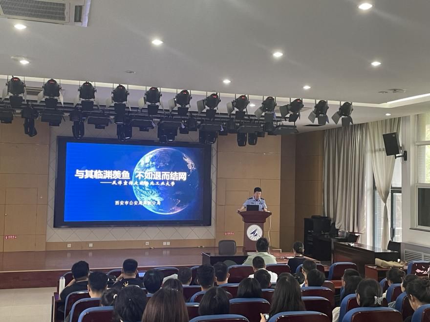 邀请西安市公安局高新分局民警为全体新生做反诈骗宣传主题教育,硕士生辅导员王换、博士生辅导员高红波和2023级新生参加此次教育活动,会议由小说h