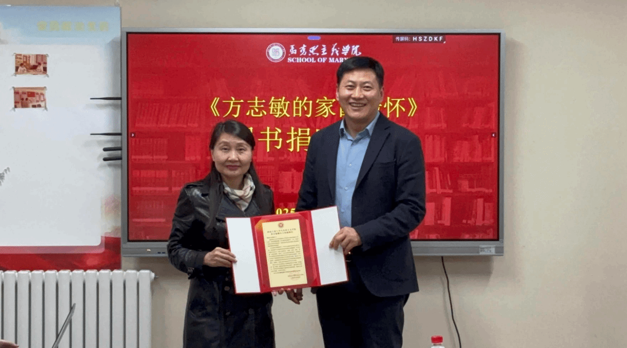 首先,进行《方志敏的家国情怀》图书捐赠仪式。捐赠方代表姚崇教授深情讲述了方志敏同志坚定的理想信念与深厚的爱国情怀,并勉励同学们从先烈的事迹中汲取精神养分,树立远大理想。杨云霞院长代表学院向姚崇教授颁发感谢信。