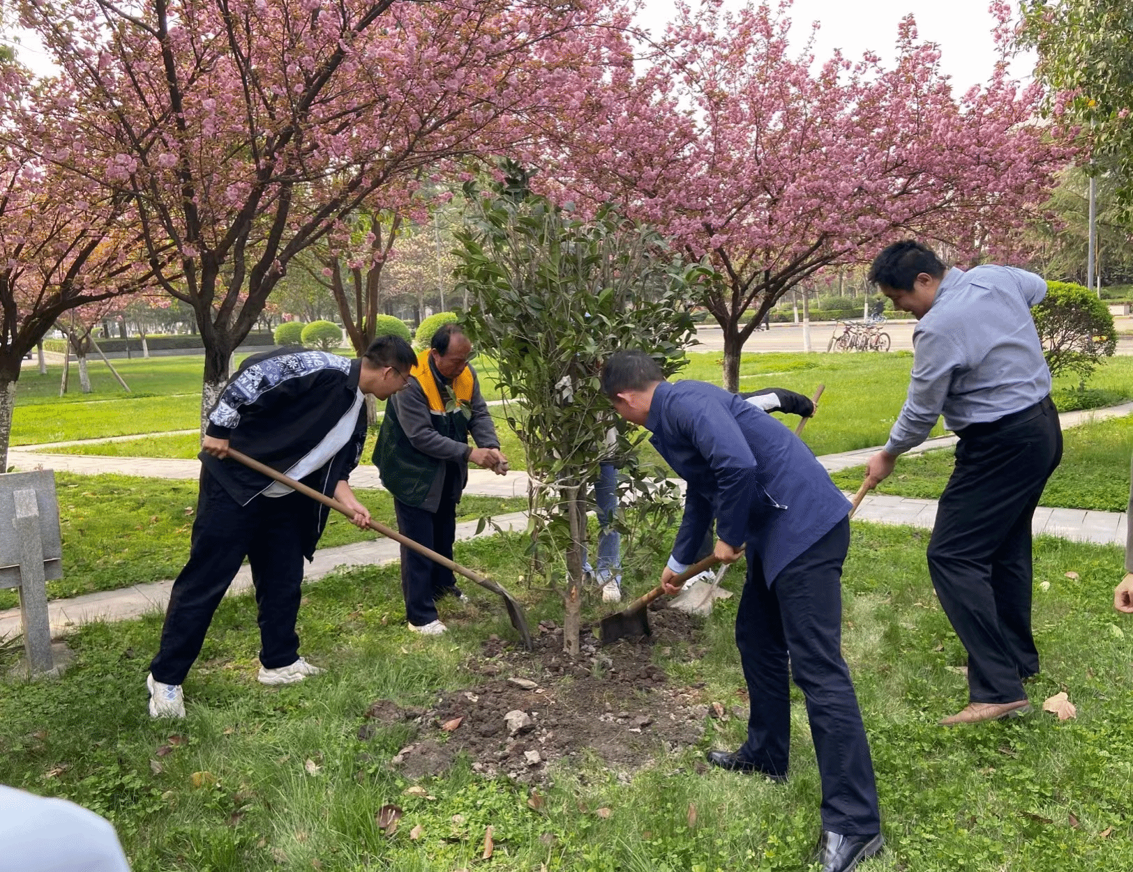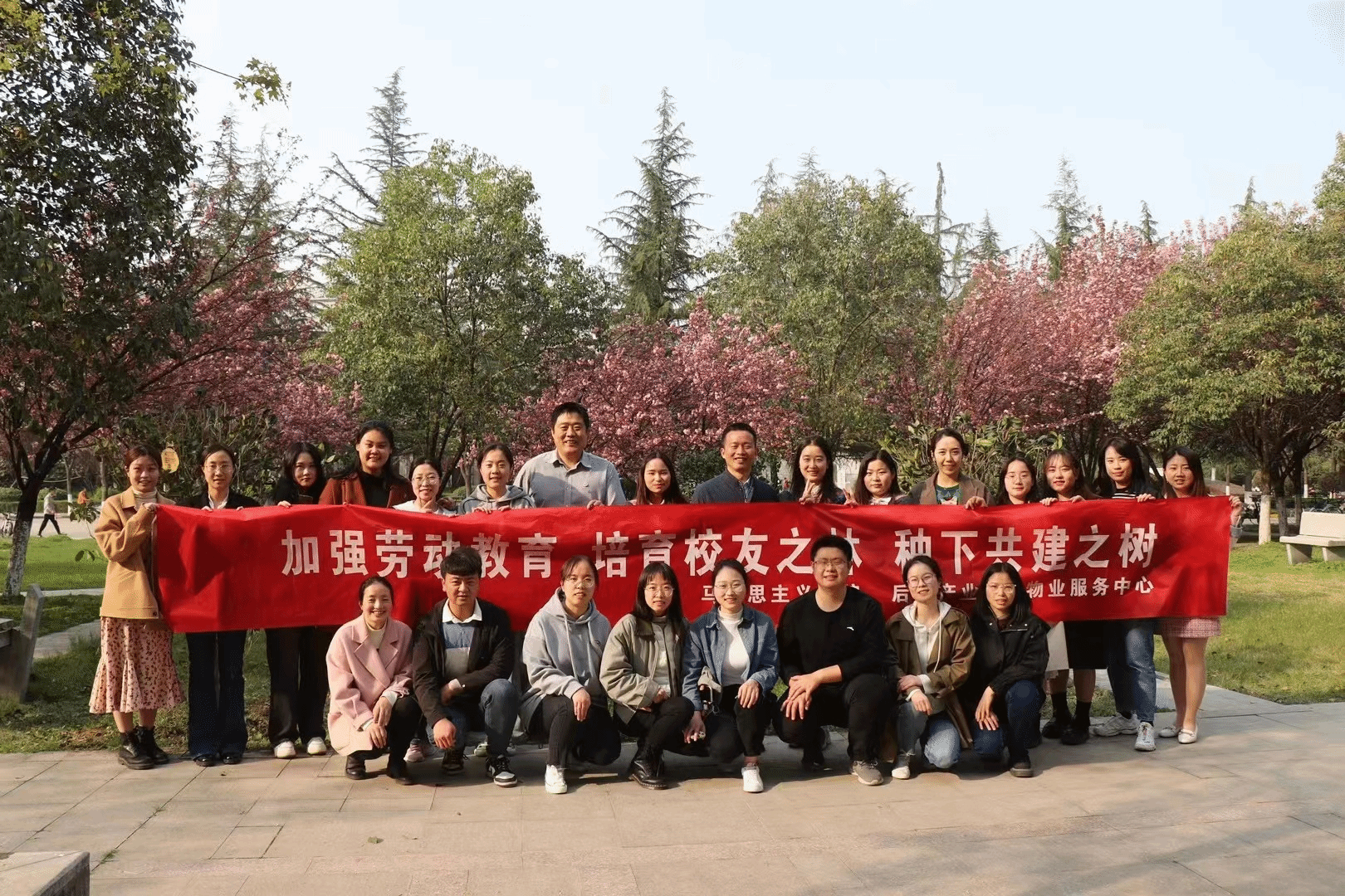 春风朝夕起,吹绿日日深。3月31日下午,在毕业到来之际,小说h 和后勤产业集团物业服务中心共同开展“加强劳动教育 培育校友之林 种下共建之树”主题教育活动。在学院党委副书记(主持工作)蒲传新、后勤产业集团周伟老师的带领下,学院机关党支部、后勤产业集团物业服务中心党支部及2023届毕业生一同在长安校区小说h 楼北侧樱花林种下四棵金桂树和一棵樱花树,取意“劳动之树、校友之树、共建之树”。