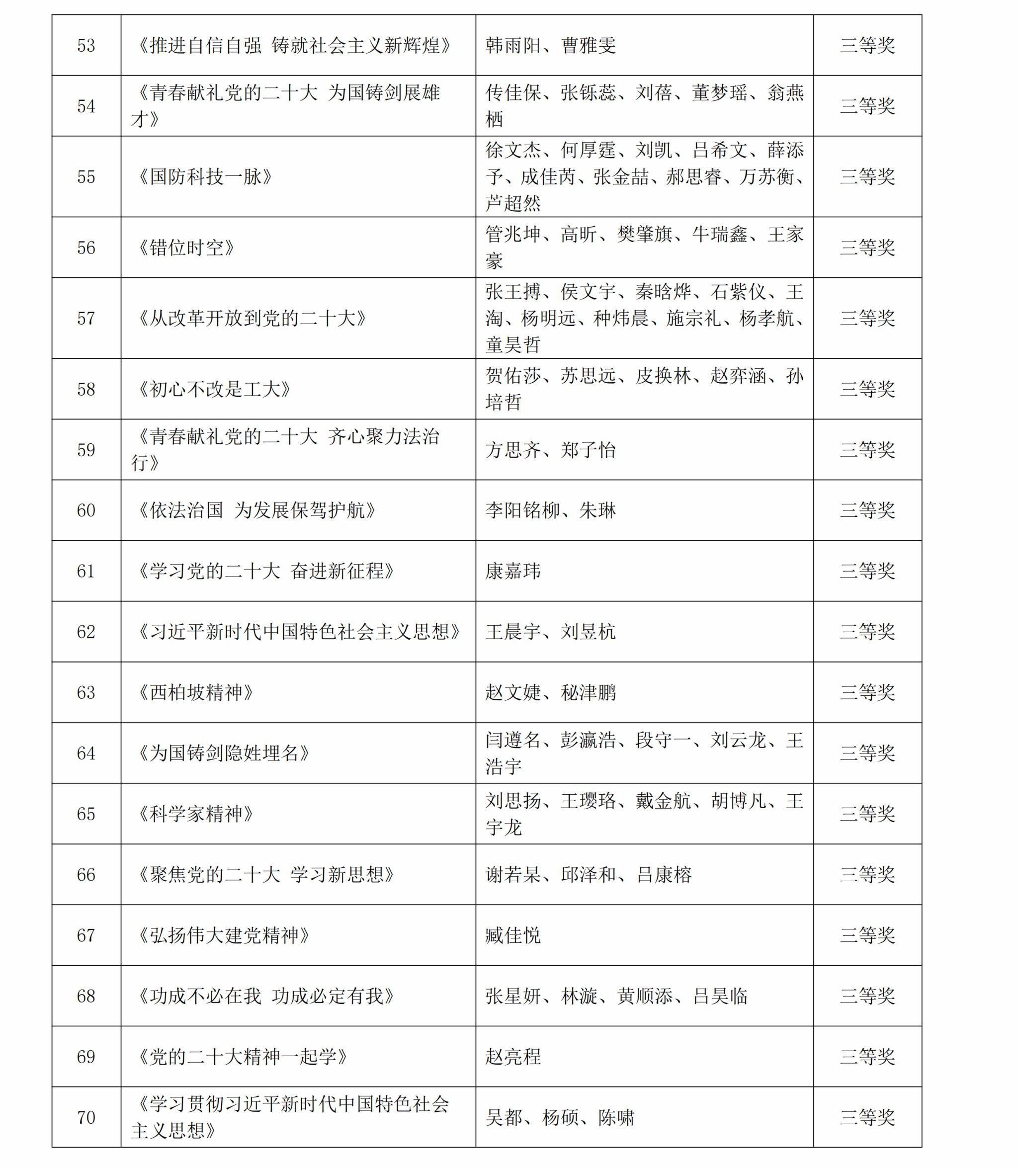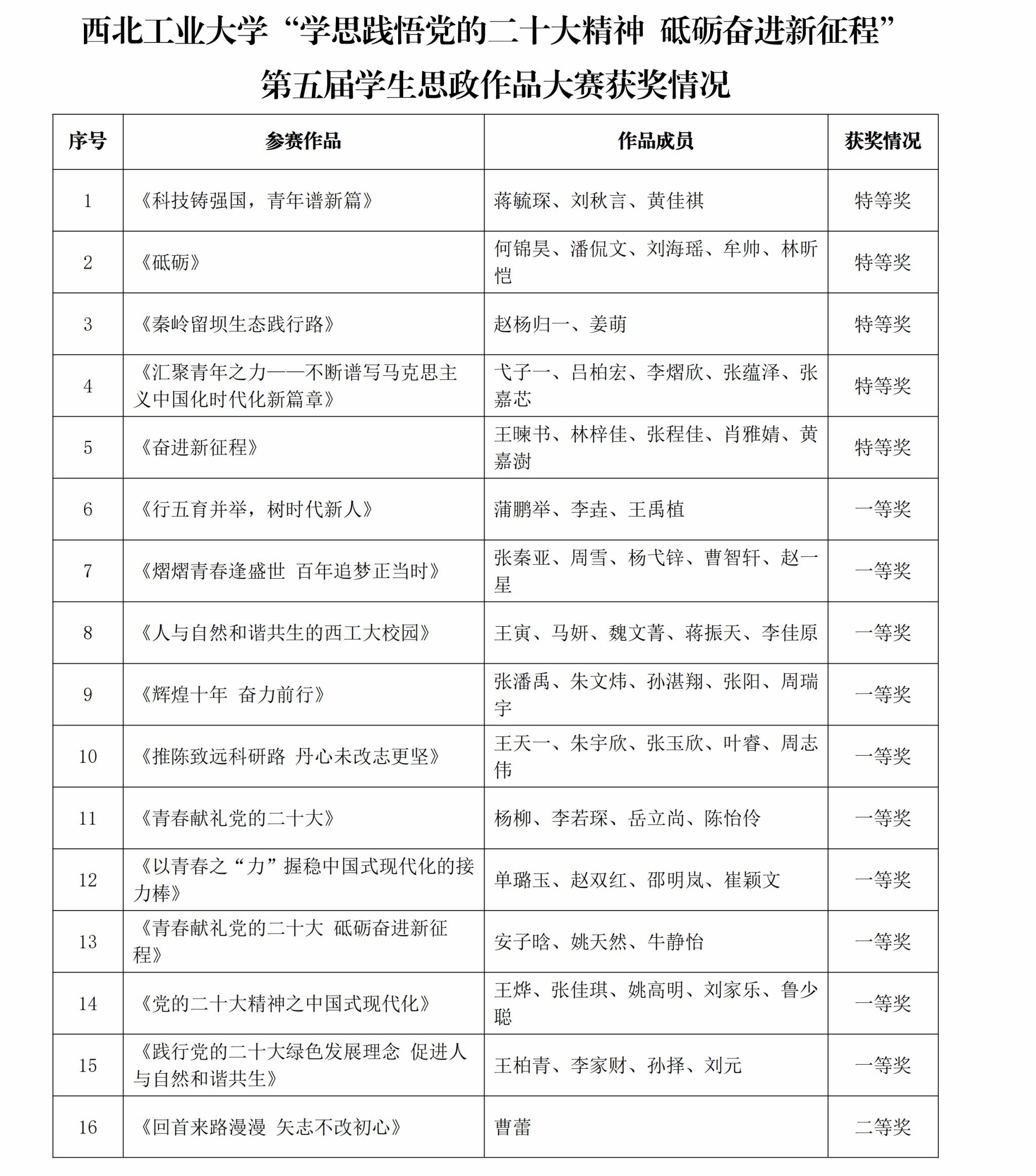 面向全校学生开展“学思践悟党的二十大精神 砥砺奋进新征程”第五届学生思政作品大赛。经过前期学生申报,专家评审,现将获奖情况予以公示,接受广大师生监督。公示时间:2023年6月21日至25日。如有疑问请在公示期内与小说h